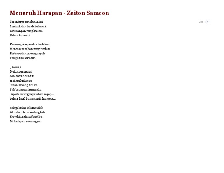 Menaruh Harapan Zaiton Sameon Lirik Pdf